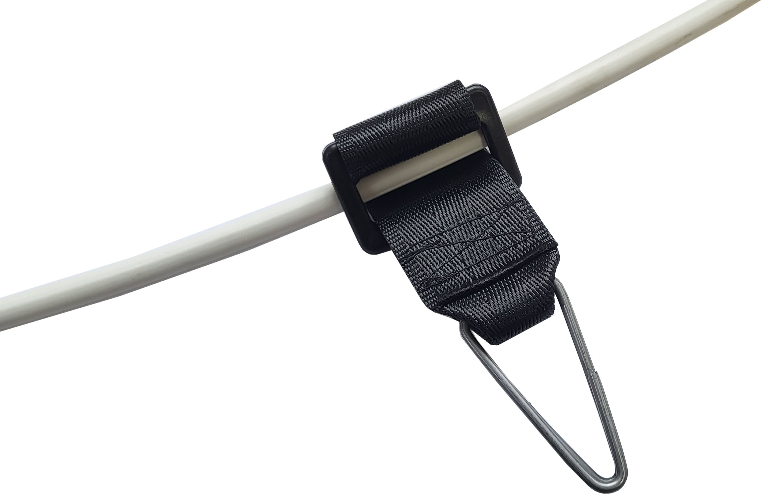 Ушко изготовлено из стали горячего цинкования, затягивающая пряжка из ультрафиолетостойкого полимера, тесьма из ультрафиолетостойкого полиэстера