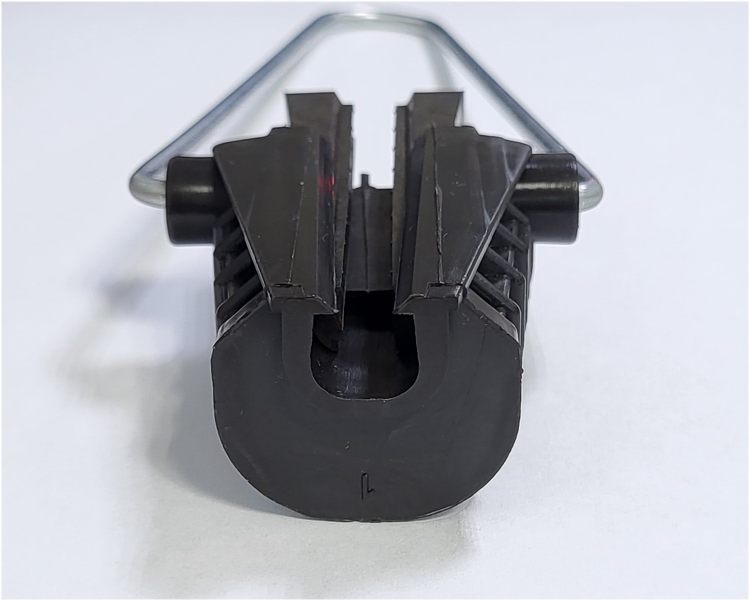 Зажим Н3 состоит из пластикового корпуса, устойчивого к морозам, полимерных клиеньев и скобы из стальной оцинкованной проволоки диаметром 4мм.