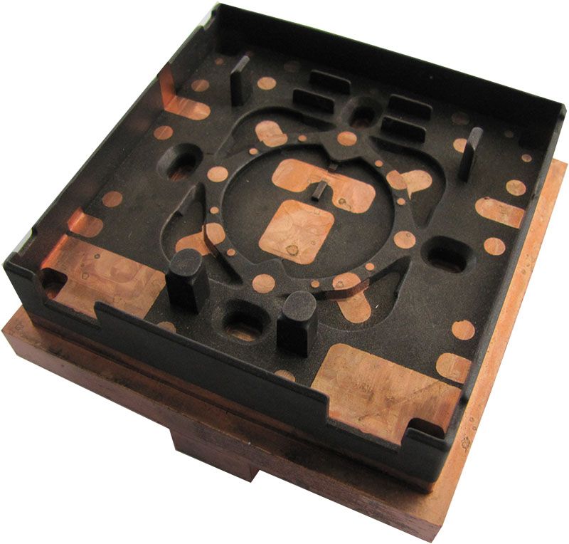 При производстве пресс-форм электроэрозионная обработка используется тех мест, которые не могут быть обработаны фрезеровкой. На фото - элемент для изготовления оптической розетки.